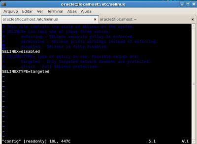 No mesmo diretório etc será necessário acessar /etc/selinux e editar o arquivo config. Mais uma vez sugiro a utilização do ‘vi’ para este processo.