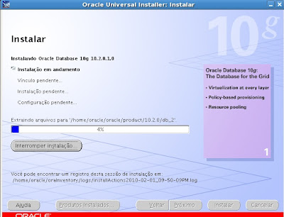Descompactei os arquivos em /instalacao/database e nele basta chamar o arquivo ./runInstaller lembrando que o ambiente unix é case sensitive. A partir dai a instação segue o mesmo padrão do Windows, exceto pelo final da instalação.