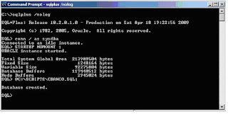Podemos ver agora que o banco foi criado com sucesso e então poderemos criar as tablespaces, datafiles, etc. relacionadas a este banco.